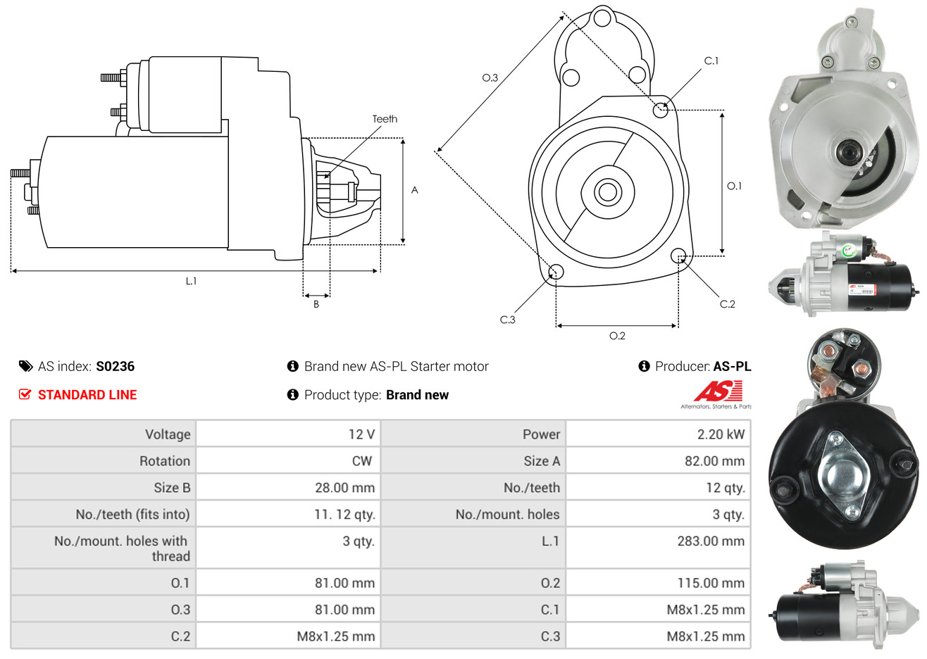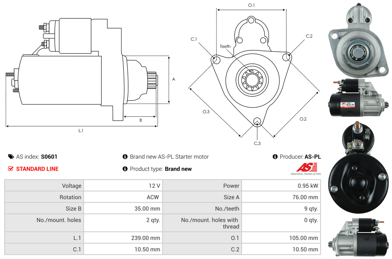 AS-PL Starter 12V für VW DAF 1516769R 003911023E 003911023CX S0601