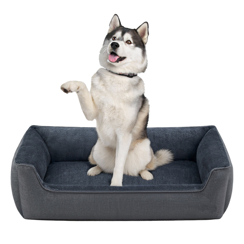 SONGMICSHOME Dog bed linen look, raised edges, non-slip bottom, removable and washable cover, XXL, 120 x 90 x 30 cm, dark grey