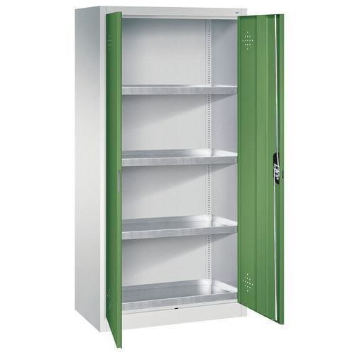 Flügeltürschrank aus Stahlblech, HxBxT 1950 x 950 x 500 mm, 4 Fachböden, resedagrün RAL 6011 eurokraft pro