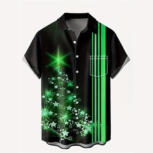 San Patrizio Per uomo Banda Rampa gradiente Camicia Manica corta Maniche corte Informale Da tutti i giorni Per uscire Fine settimana Autunno Collo ripiegabile Tasche Stampa Bottone giù Verde