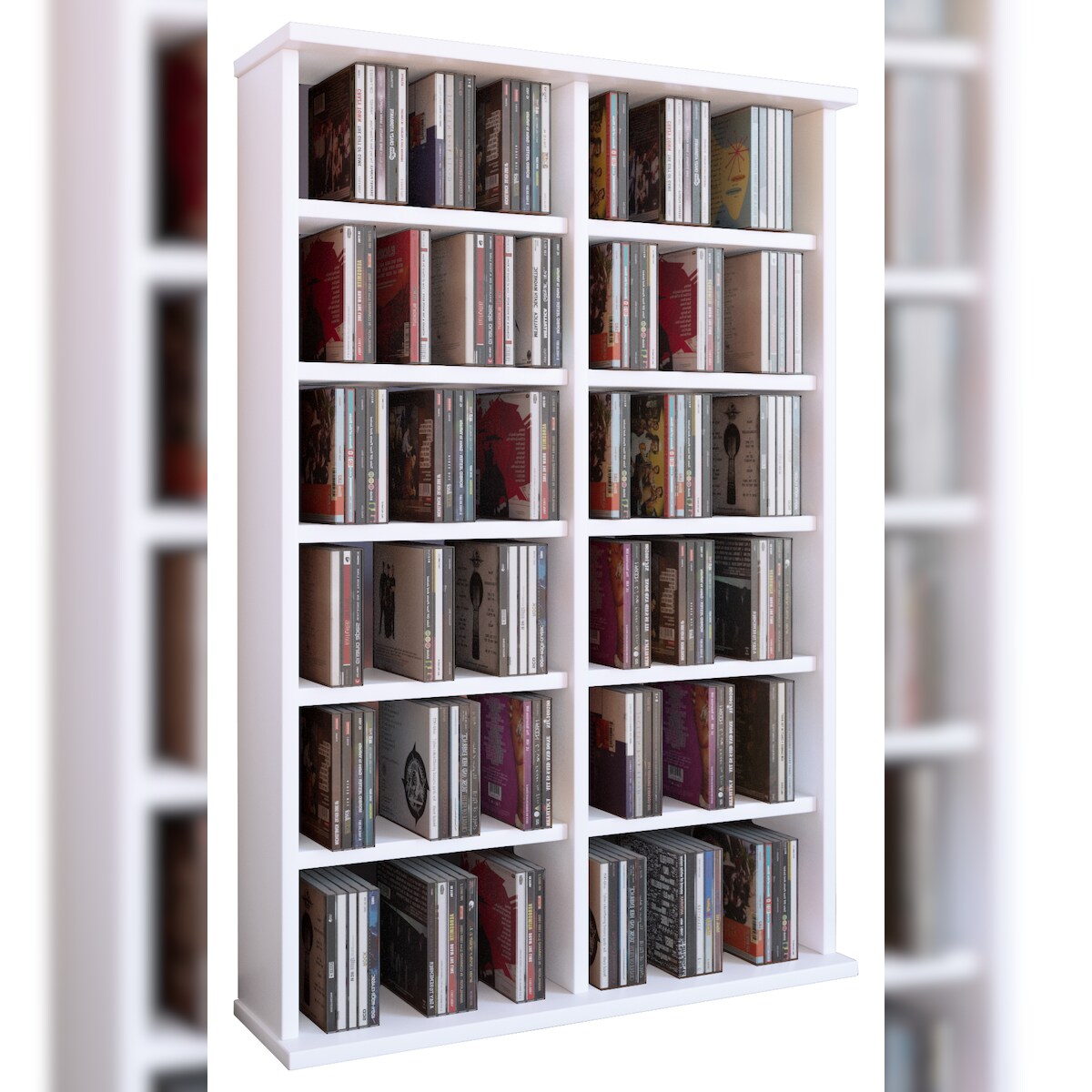 Media-Regal VCM "VCM CD Regal Holz CD Schrank mit ESG-Sicherheitsglastüren für 204 CDs oder 72 DVDs Maße: H. 98 x B. 31 x T. 35 cm Elegantes DVD Regal mit Rollen Blu ray Regal CD Regal - Valenza" Gr. 31, weiß, B:31cm H:98cm T:35cm, Holzwerkstoff,...