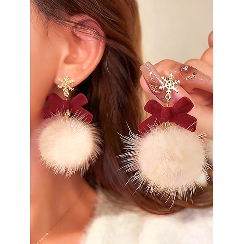 orecchini da donna con pompon a forma di fiocco di neve natalizio, realizzati in lega e pelliccia sintetica, perfetti per feste e regali