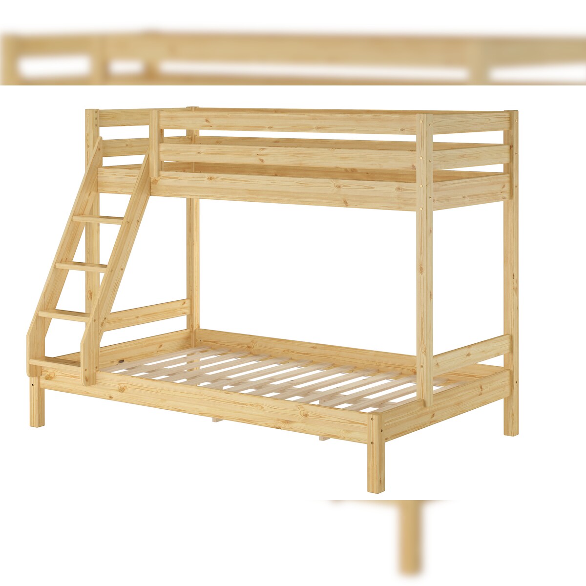 Erst-Holz Doppel-Etagenbett 120x200 und 80x200 Erwachsenen-Stockbett Kiefer Massivholz natur V-60.18-08-12 Rollrost inkl.