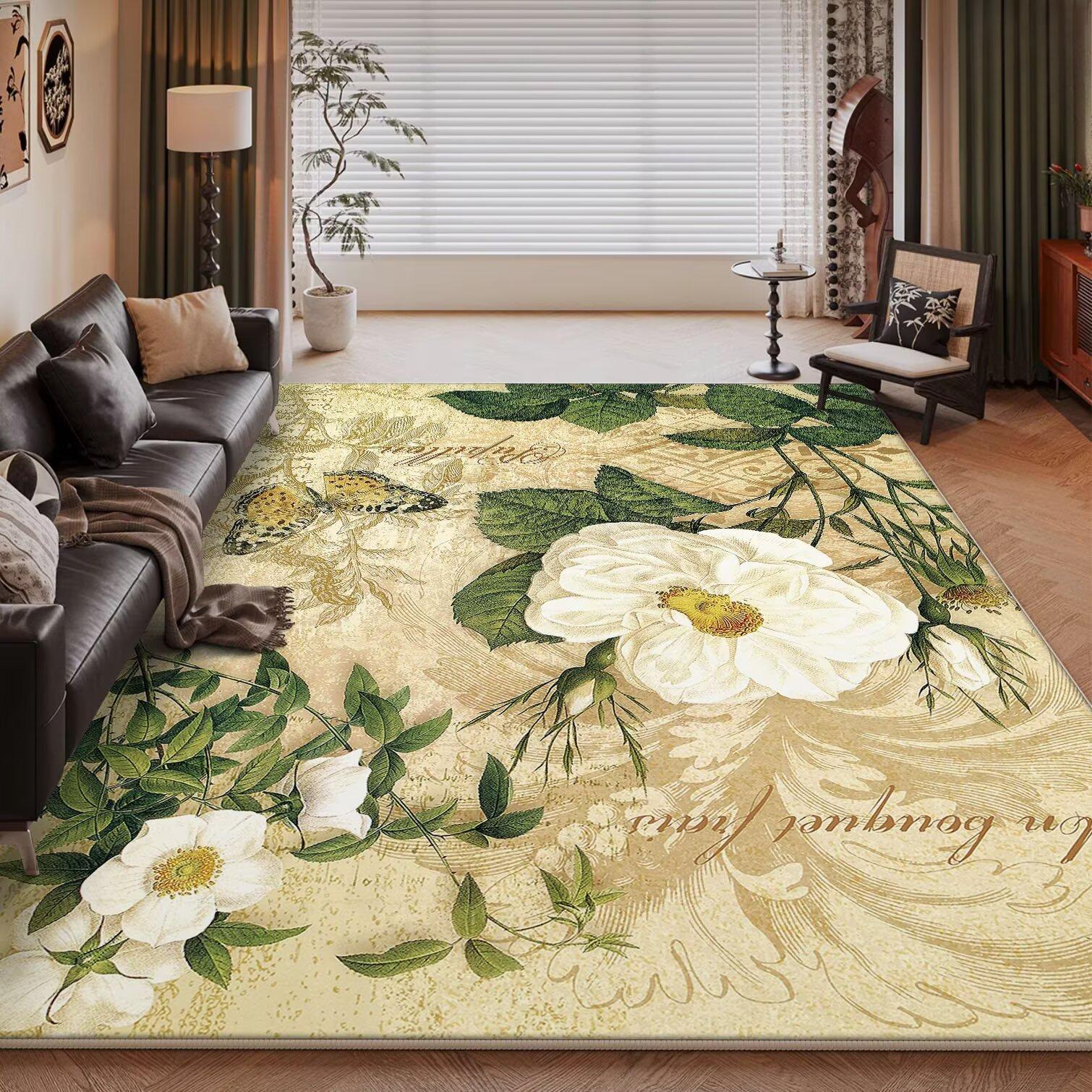 Nordic Light Luxury Home Bedroom Carpet Large Size Pastoral Flower Living Room Rugs Washable Lounge Rug Hotel Lobby Floor Mats