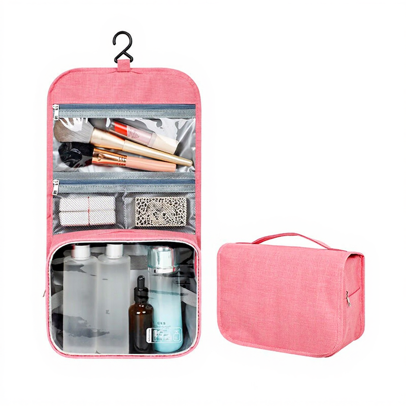 Tragbare aufhängbare Toilettentasche – große Kapazität, auch als Make-up-Tasche, rosa