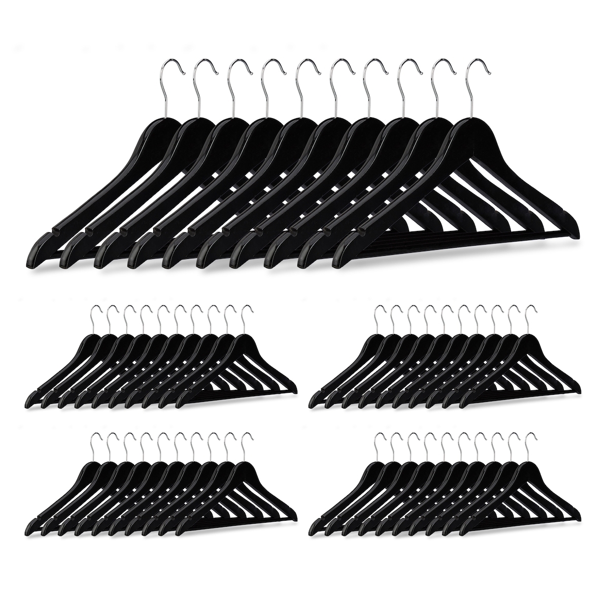 Relaxdays Kleiderbügel Holz 10er Set, rutschfeste Lamellen, natürliche Optik, 360° drehbarer Haken, stabil, 42 cm, natur