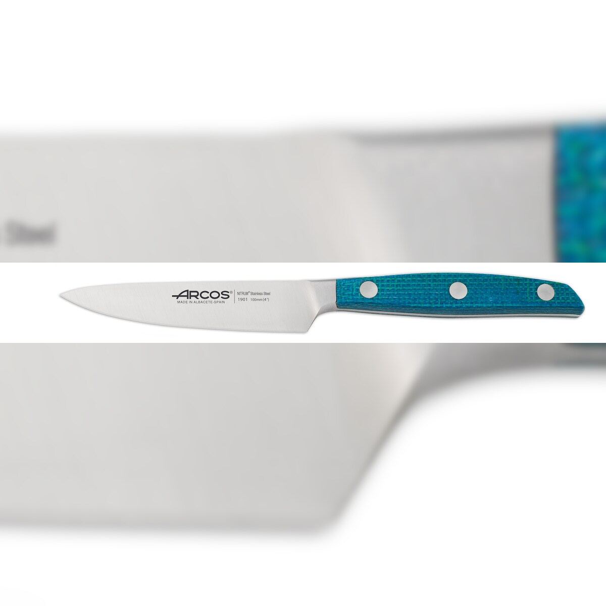 Arcos Serie Brooklyn - Schälmesser - Klinge aus Nitrum geschmiedetem Edelstahl 100 mm - HandGriff Micarta Farbe Blau (Seiden klinge)