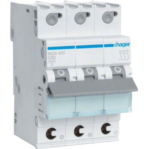 Hager LS-Schalter 3P 6kA C-20A QuickConnect 3M 3PLE