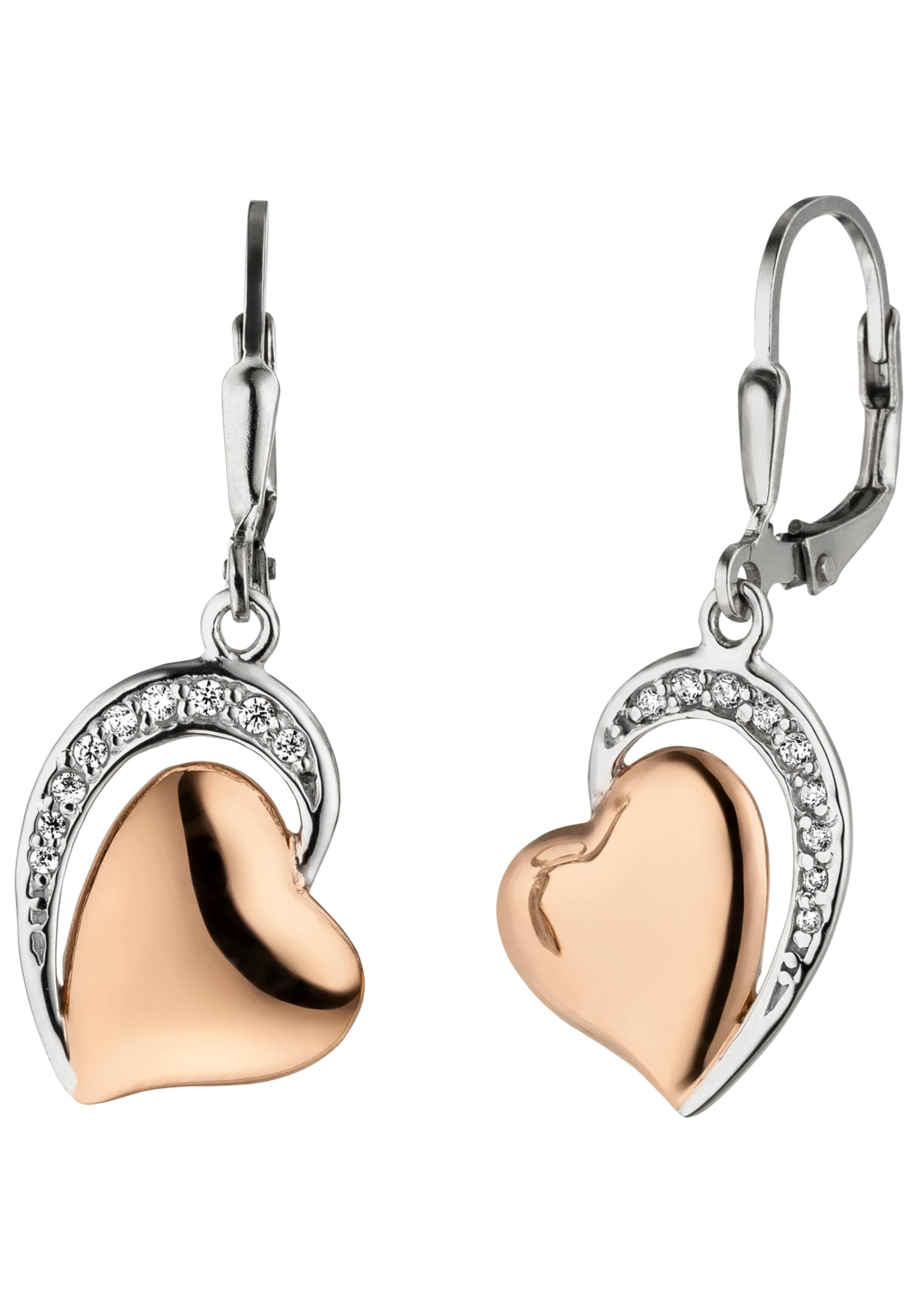 Paar Ohrhänger JOBO "Herz", silber (silber 925), Ohrringe, Damen, Silber 925 (Sterlingsilber), 925 Silber bicolor vergoldet mit Zirkonia