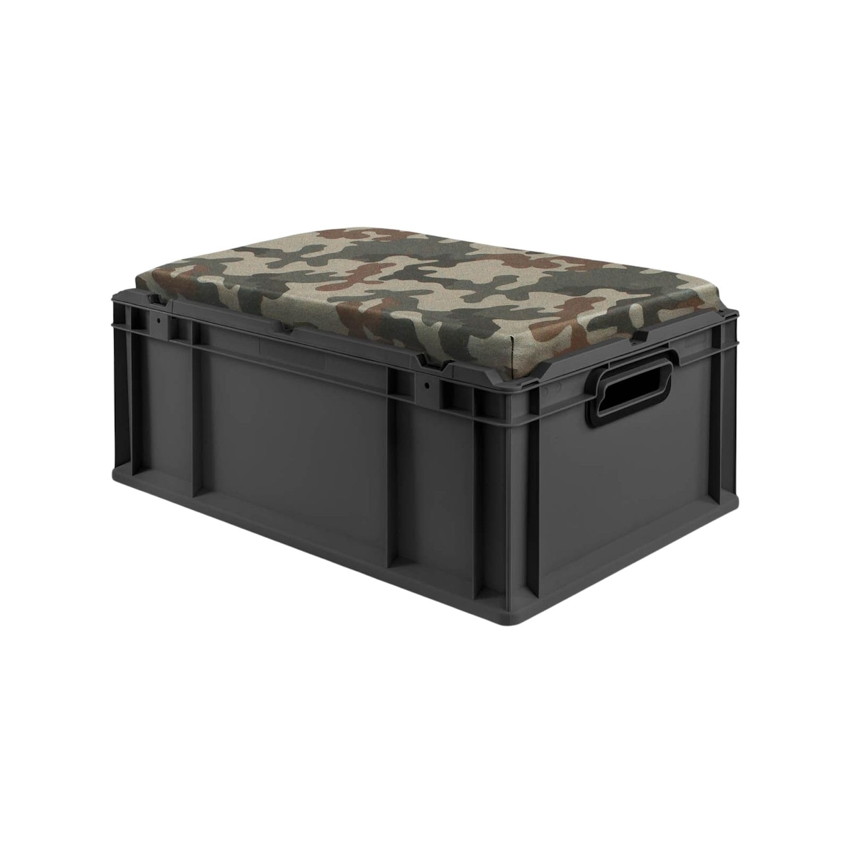 PROREGAL Eurobox NextGen Seat Box Camouflage, HxBxT 36,5x40x60cm, 65 Liter, Griffe offen, Schwarz, Eurobehälter, Sitzbox, Transportbox
