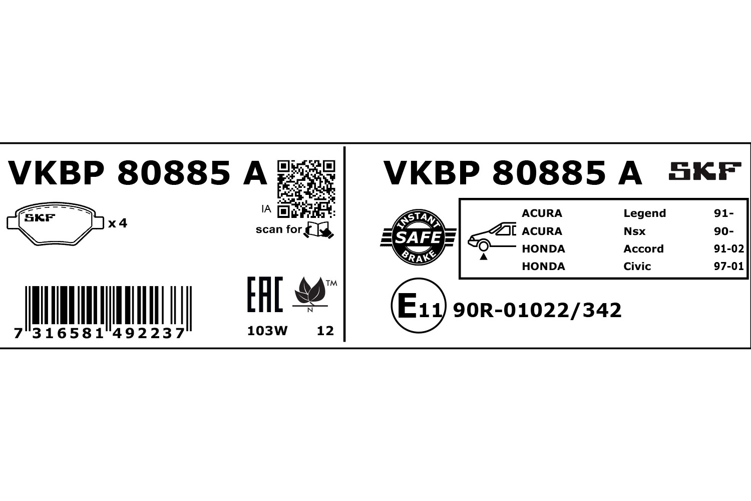 SKF Bremsbelagsatz, Scheibenbremse VKBP 80885 A vorne rechts links für RENAULT ACURA ROVER HONDA 45022S47010 GBP90329 45022-SL0-020