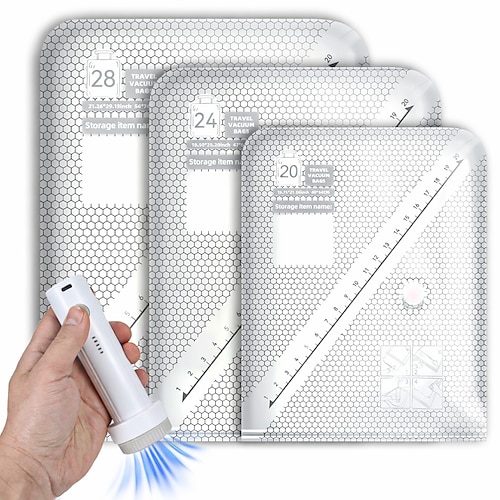 Set di sacchetti sottovuoto da viaggio senza fili con pompa ricaricabile, sacchetti sottovuoto riutilizzabili grigi, organizer trasparente per vestiti, per armadio, bagagli e imballaggio da viaggio