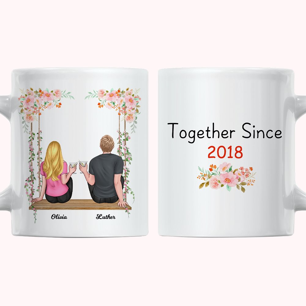Personalisierte Swing-Paar zusammen seit Jahren Liebesgeschichte Weiße Keramiktasse Paargeschenk Spülmaschinen- und mikrowellengeeignet