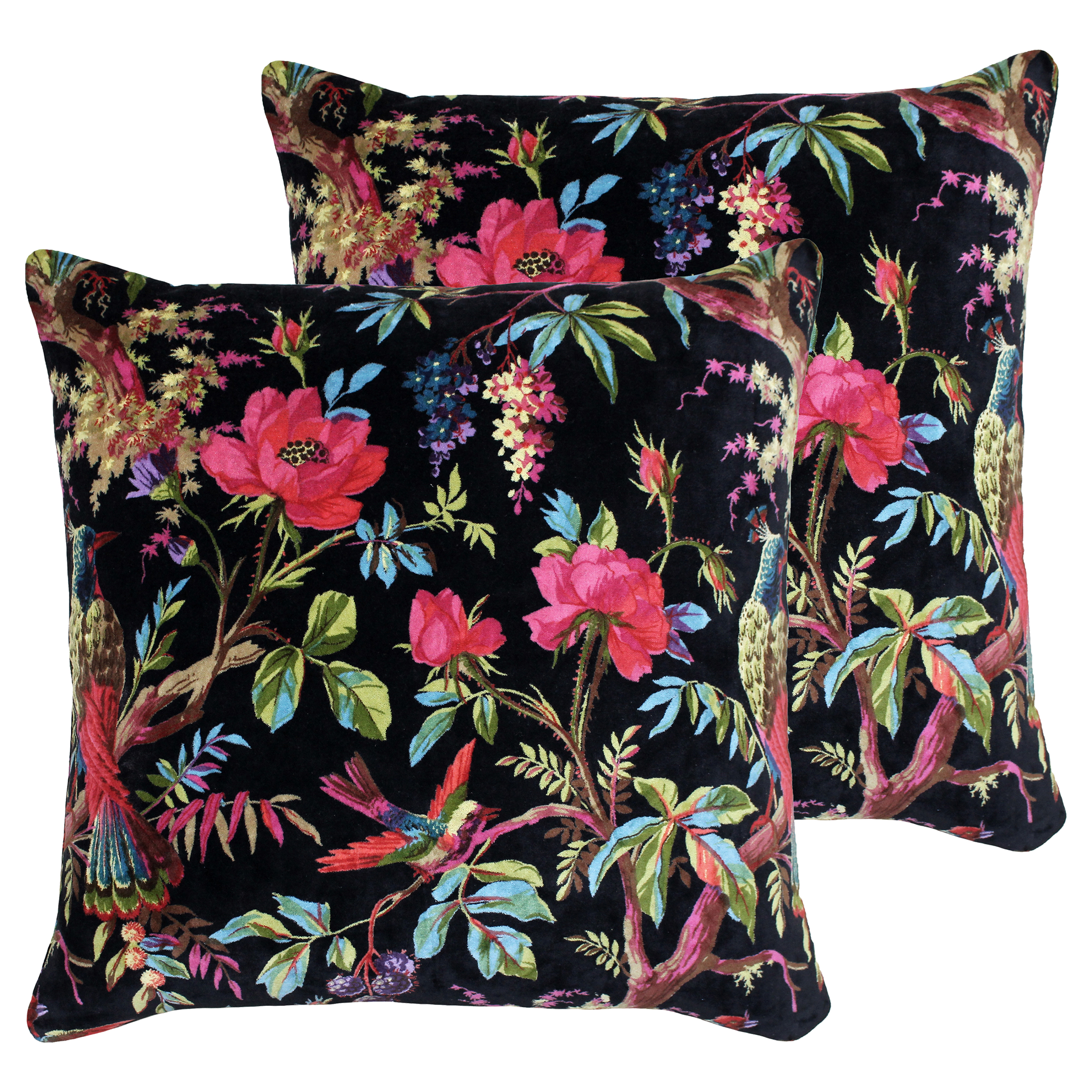 Paoletti Paradise Square Cushions (twin Pack) - Black Cotton - Size 50 cm x 50 cm | Paoletti Sale | Discount Designer Brands