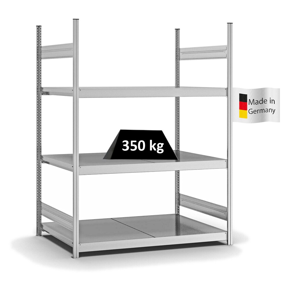 PROREGAL Weitspannregal Stecksystem T-Profil | HxBxT 200x150x60cm | 3 Ebenen | Stahlplatten-Fachboden | Fachlast 350kg | Verzinkt | Lagerregal