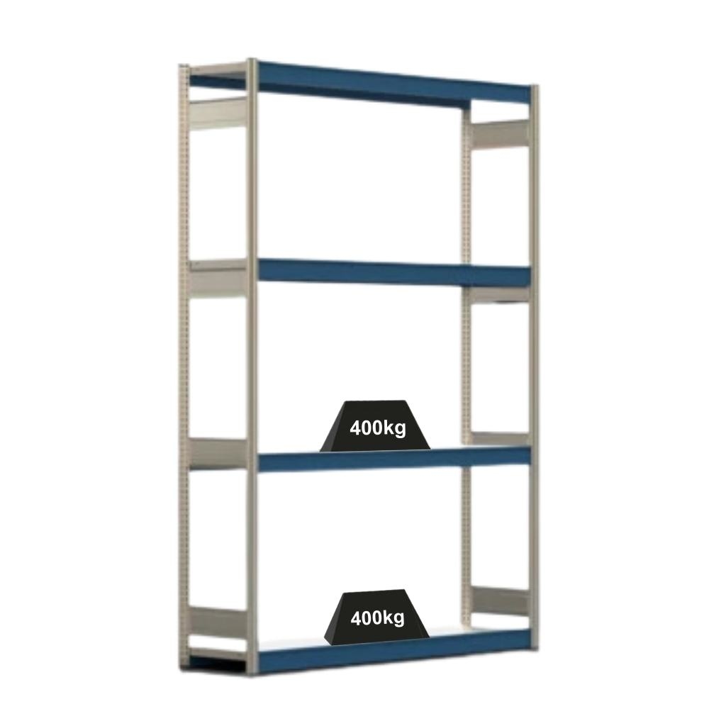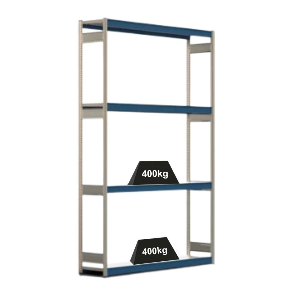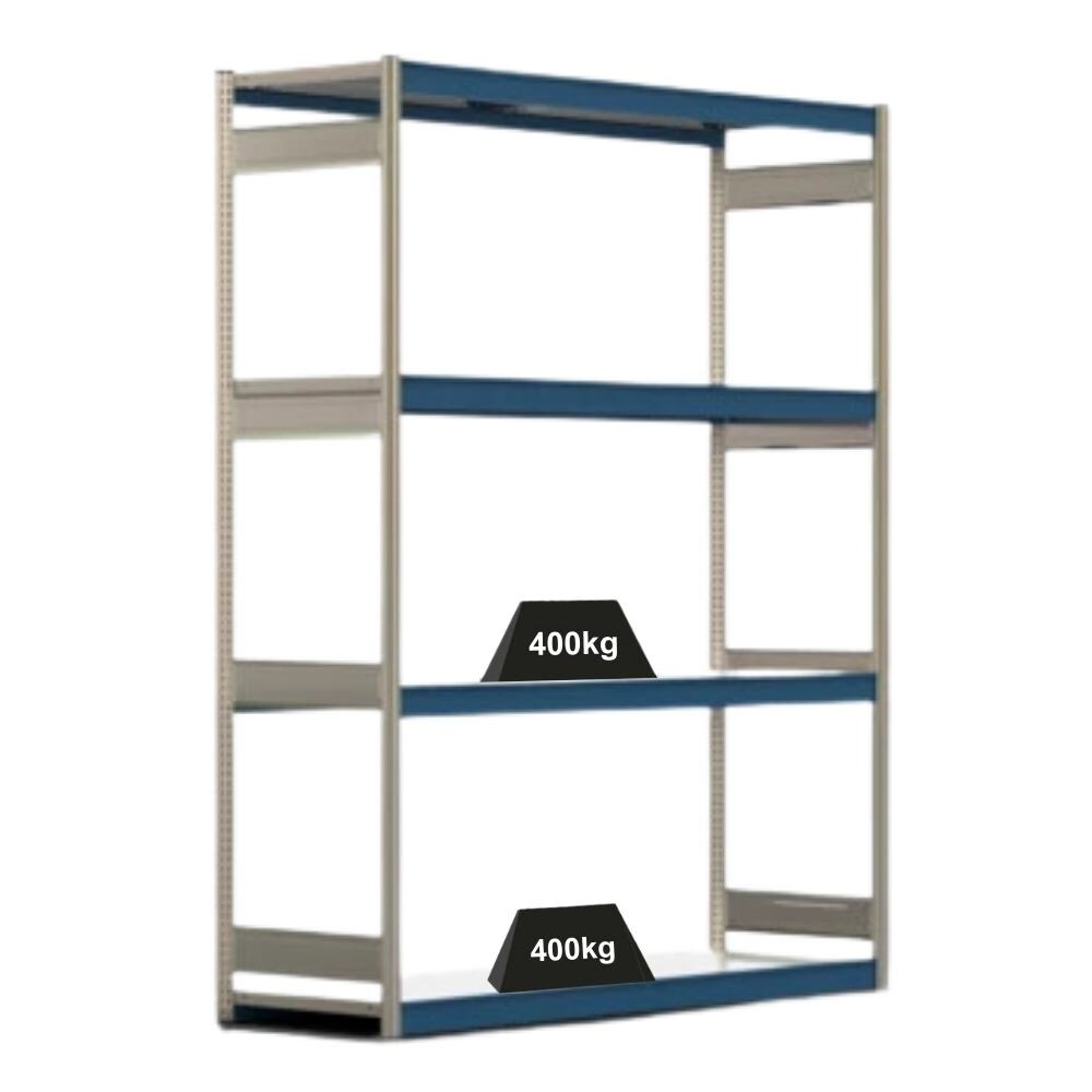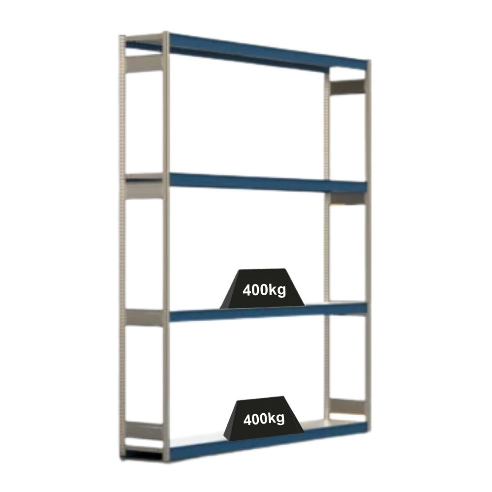 PROREGAL Weitspannregal ELCH Stecksystem T-Profil | Grundregal | HxBxT 200x257x60cm | 4 Ebenen | Stahlplatten-Fachboden | Fachlast 400kg | Enzianblau