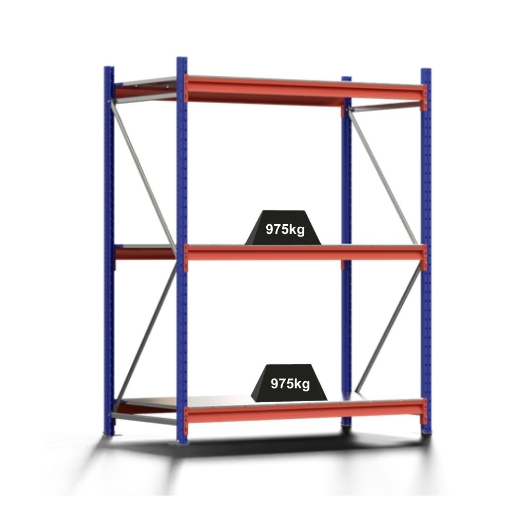PROREGAL Weitspannregal MOOSE Stecksystem Omega-Profil, Grundregal, HxBxT 200x150x80cm, 3 Ebenen, Stahlplatten-Fachboden, Fachlast 975kg, Blau/Orange