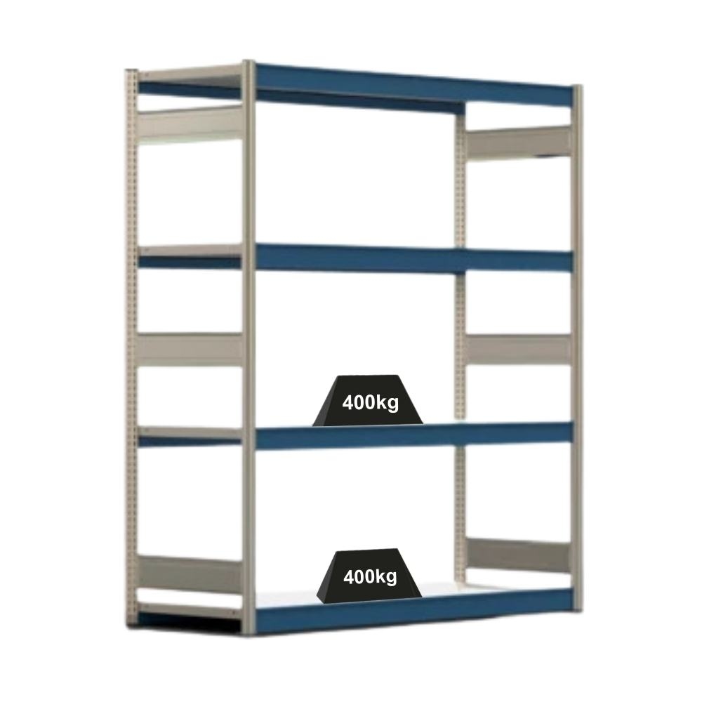 PROREGAL Weitspannregal ELCH Stecksystem T-Profil | Grundregal | HxBxT 200x201x60cm | 4 Ebenen | Stahlplatten-Fachboden | Fachlast 400kg | Enzianblau