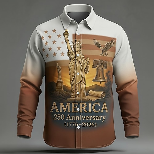 Per uomo Statua della Libertà Bandiera degli Stati Uniti 250° anniversario degli Stati Uniti Camicia Camicia con Bottoni Manica Lunga Vintage Retrò Ferie Primavera Autunno Collo ripiegato Stampa 3D