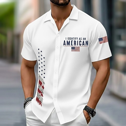Per uomo Bandiera degli Stati Uniti Patriottico 250° anniversario degli Stati Uniti Camicia Camicia con Bottoni Manica Corta Moda Casual Ferie Casual Quotidiano Estate Primavera Collo ripiegato