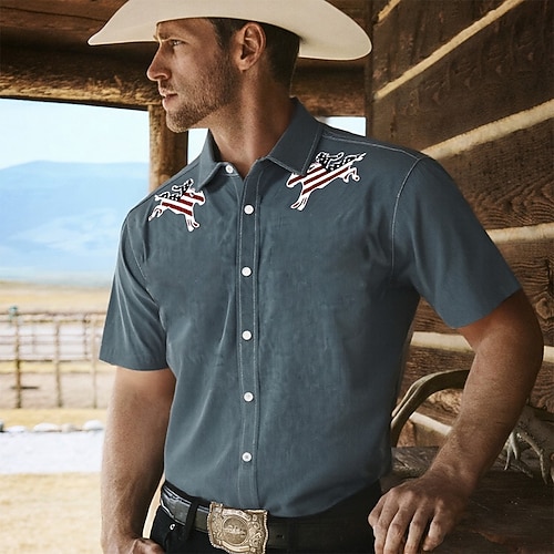 Per uomo Bandiera degli Stati Uniti Cowboy 250° anniversario degli Stati Uniti Camicia Camicia con Bottoni Manica Corta Vintage Retrò All'aperto Ferie Estate Primavera Collo ripiegato Stampa 3D