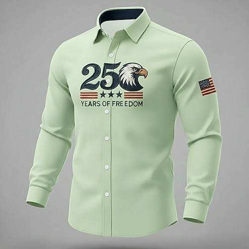 Per uomo Aquila Bandiera degli Stati Uniti 250° anniversario degli Stati Uniti Camicia Camicia con Bottoni Manica Lunga Vintage Retrò Ferie Casual Quotidiano Primavera Autunno Collo ripiegato Stampa