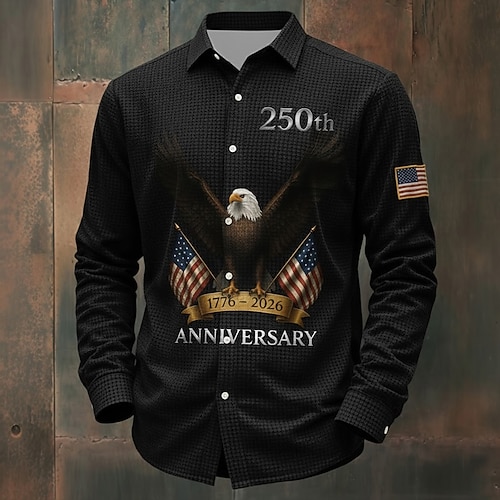 Per uomo Aquila Bandiera degli Stati Uniti 250° anniversario degli Stati Uniti Camicia Camicia a nido d'ape Camicia casual Manica Lunga Vintage Retrò Abbigliamento Quotidiano Ferie Estate Primavera