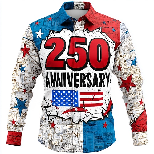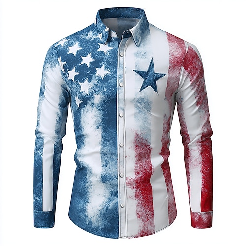 Per uomo Bandiera degli Stati Uniti Patriottico 250° anniversario degli Stati Uniti Camicia Camicia con Bottoni Manica Lunga Vintage Retrò Ferie Casual Quotidiano Primavera Autunno Collo ripiegato