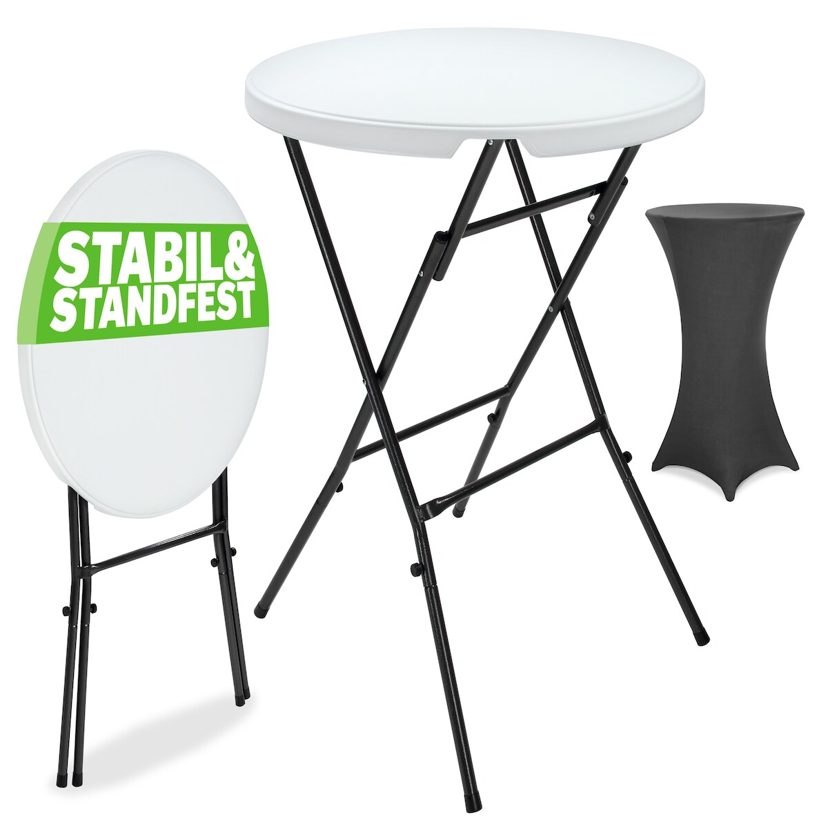 Baumarktplus Stehtisch mit weißer Husse klappbar Ø 60cm Bistrotisch Stehtisch Klapptisch wetterfest