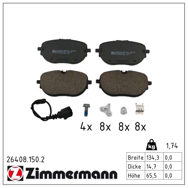 ZIMMERMANN Bremsbelagsatz, Scheibenbremse 26408.150.2 vorne rechts links mit Feder für VW CUPRA 1EA698151L 1EA698151