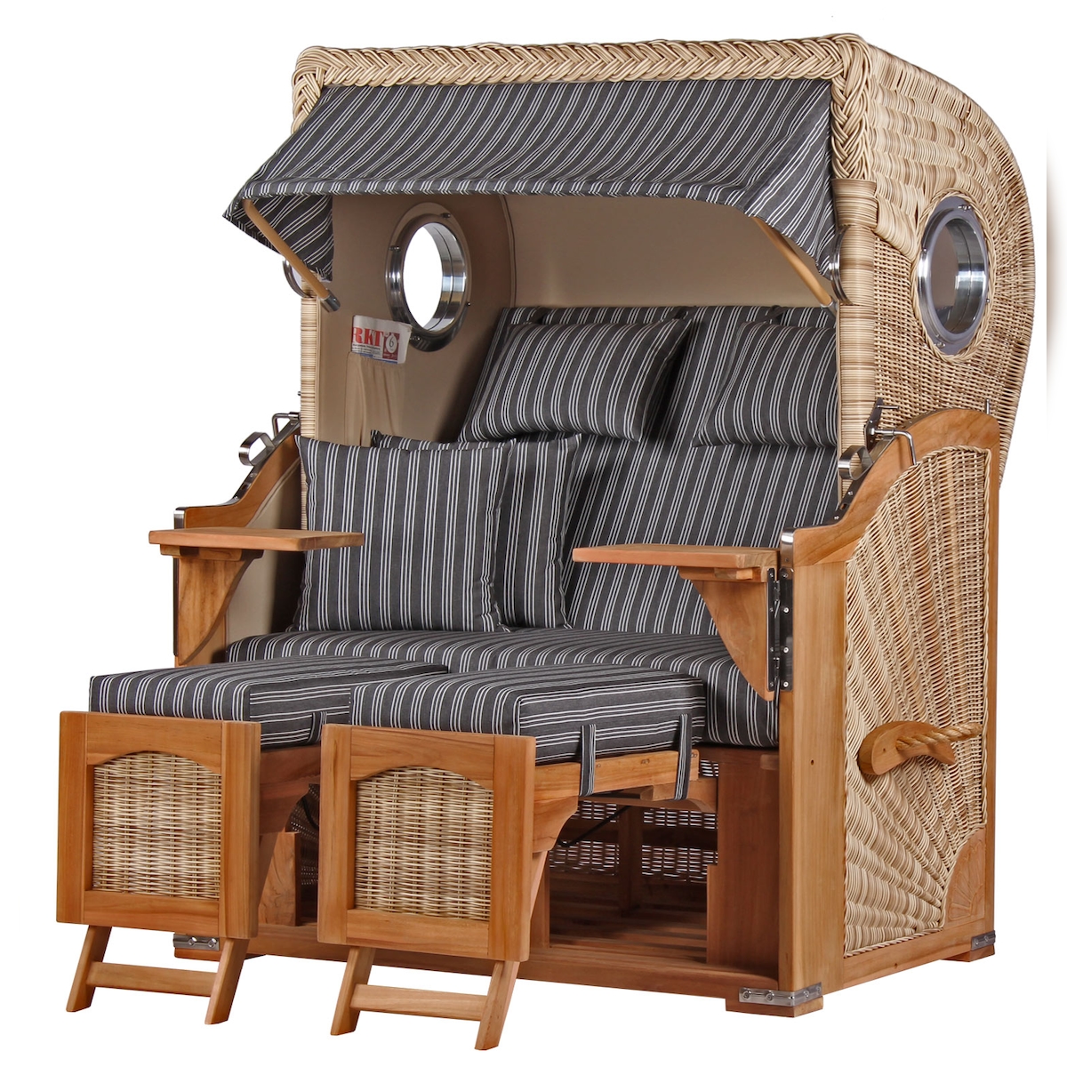 Mr. Deko Strandkorb Komplettset - bene living - Ammersee Teak - PE grau - Modell 500 - inkl. Liftersystem