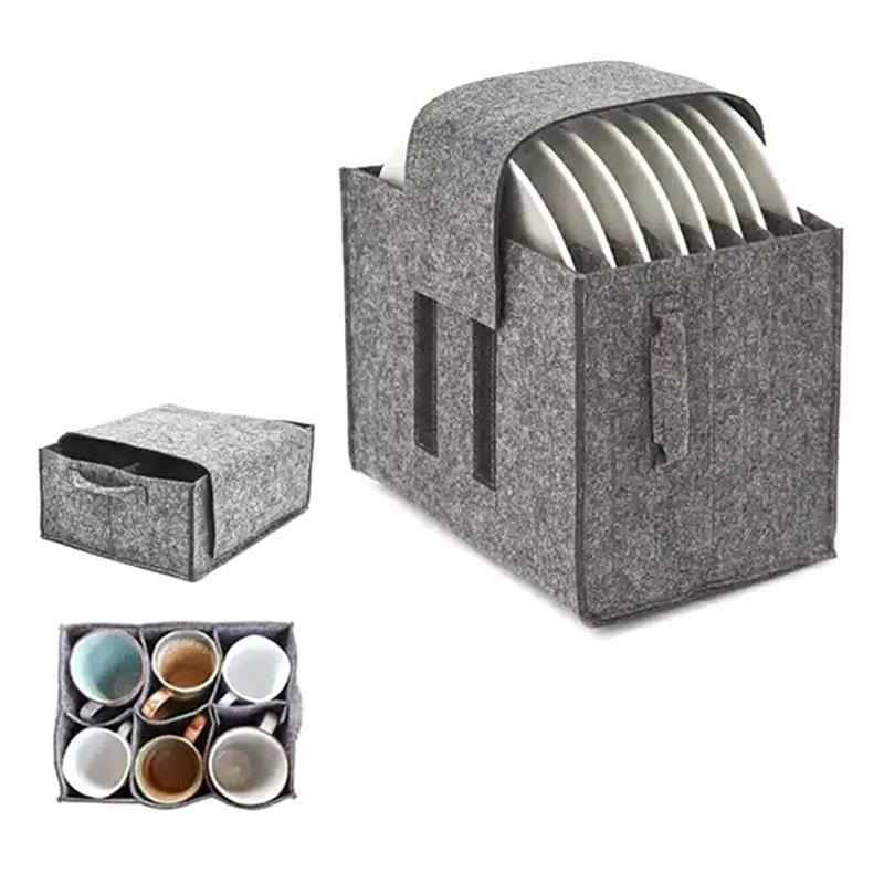 Felt Plate Dish Cup Storage Bag Holder Thicken Camping Tableware Containers Motorhome Kitchen Cupboard Layered Organization