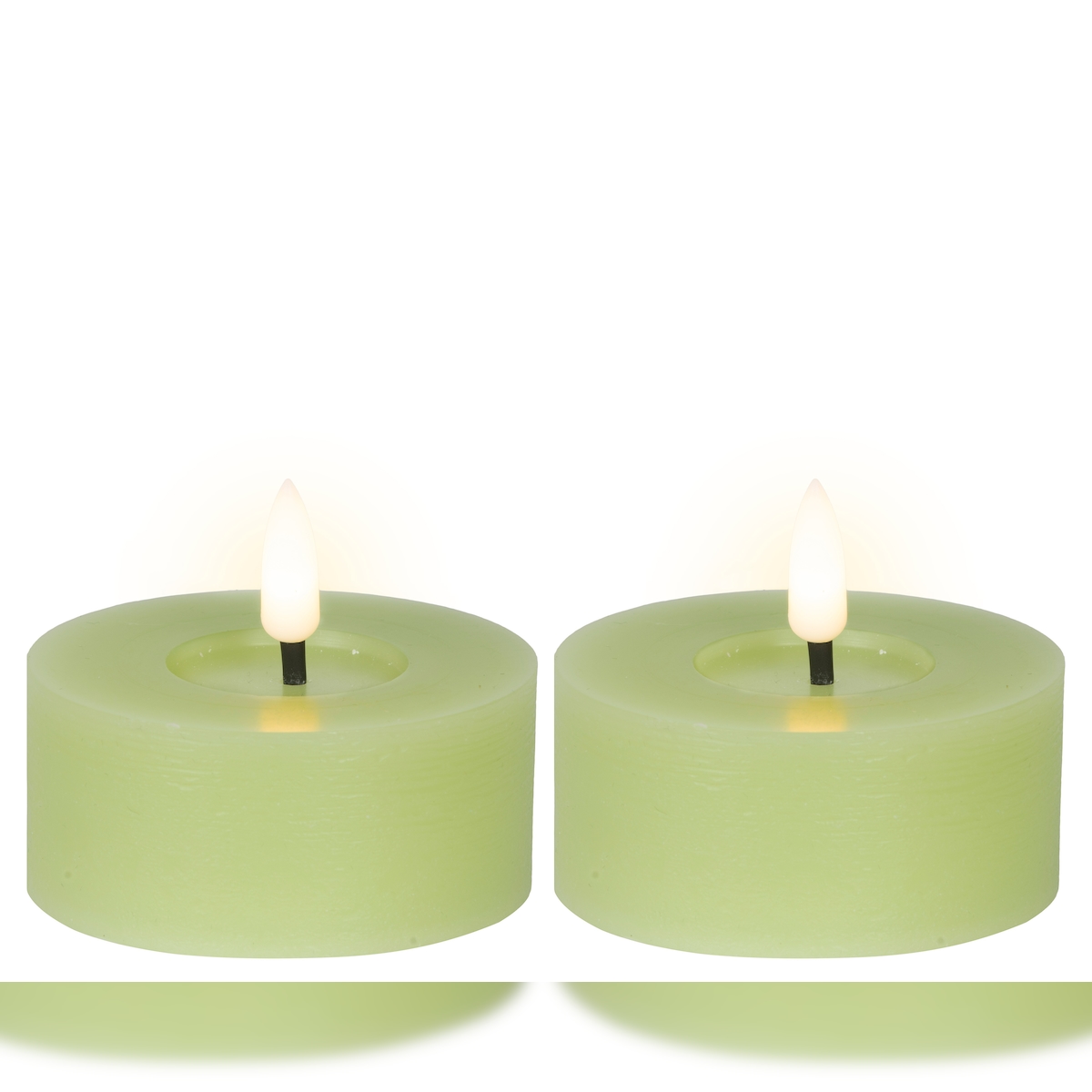 Lumineo 2 LED Teelichter 7x6cm Wachskerzen Timer Flammenlose Teelichtkerzen Warmweiß Tischkerzen Wachs Dekokerzen Teelicht Kerzen Timerfunktion Warm Grün