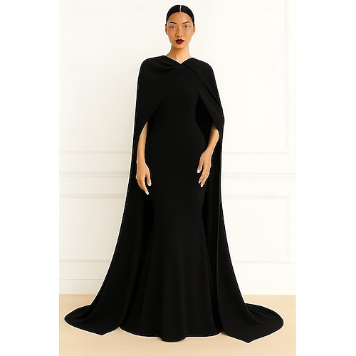 Sirena Tromba Tubino Colonna Lunghezza al pavimento Abito da ballo con mantello Abito da Sera Abito formale Elegante Setoso Senza Maniche Collo Alto Matrimonio Formale Mantelle Crepe Elasticizzato con