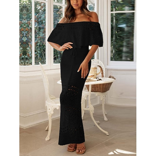 Per donna Abito maxi Tubino Casual All'aperto Uscire Taglia piccola Tinta unica Mezza Manica Senza Spalle Nero Bianco Albicocca Estate Primavera Autunno