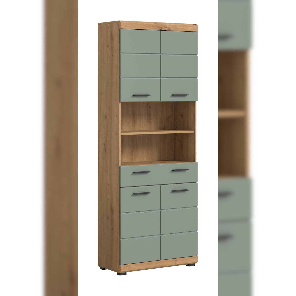 Bad Hochschrank in Eichefarben und Weiß 2 Türen 1 Schublade