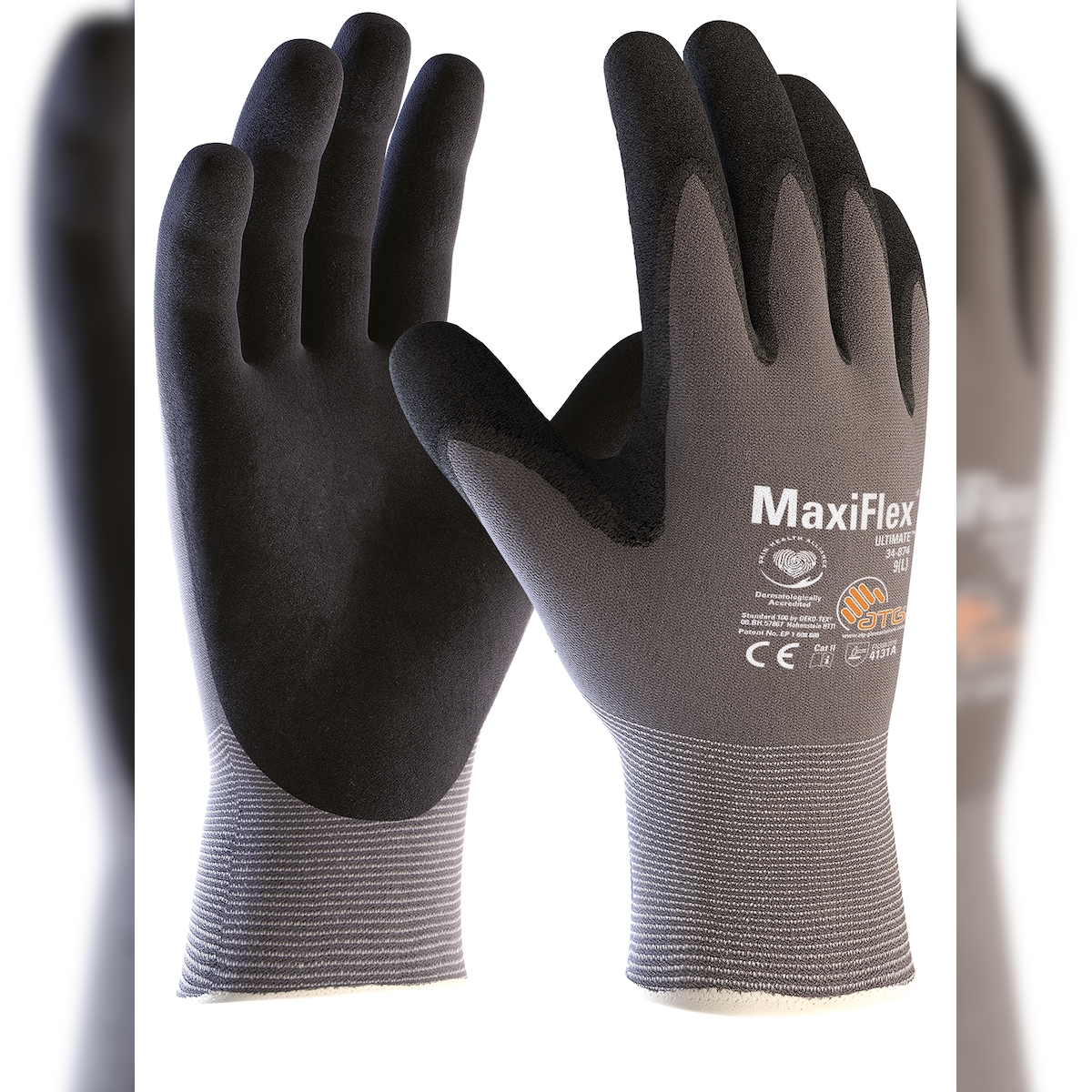 ATG `MaxiFlex Ultimate` 3/4 beschichtet, Nylon-Strickhandschuhe, Nitril beschichtet,Kat. 2 (34-875) - Größe 9 (L)