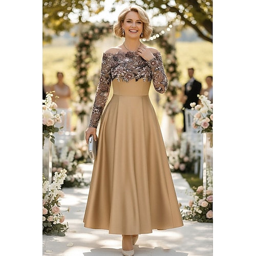 Linea ad A Lunghezza alla caviglia Lunghezza Tè Vestito da Festa Abito da Cocktail Abito da invitata a nozze Abito da cerimonia per signora Manica Lunga Girocollo Elegante Brillare Splendere