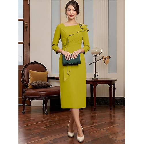 Tubino Colonna Lunghezza Tè Vestito da Festa Abito da Cocktail Abito da invitata a nozze Abito da cerimonia per signora Manica Lunga Collo quadrato Elegante Minimalista Formale Ospite di nozze
