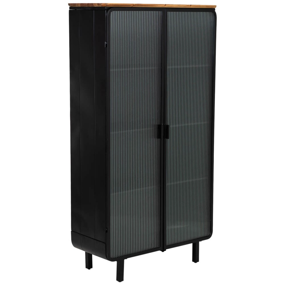 Vetrina in metallo, legno e vetro con 2 porte 84x35,8x152h cm - nero