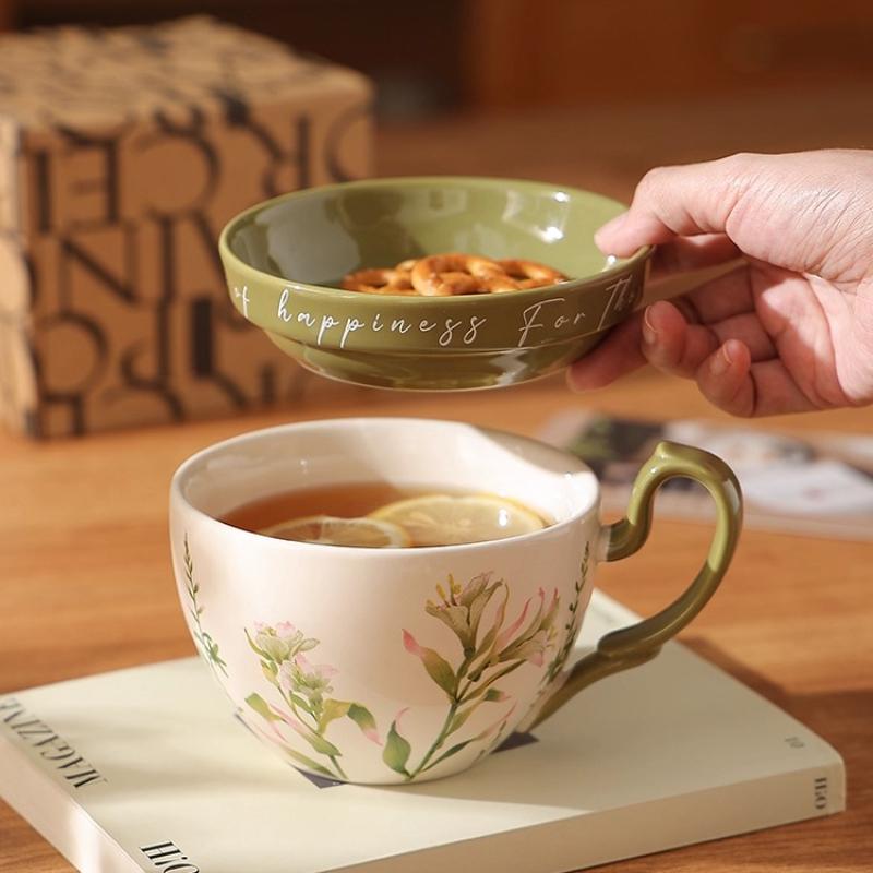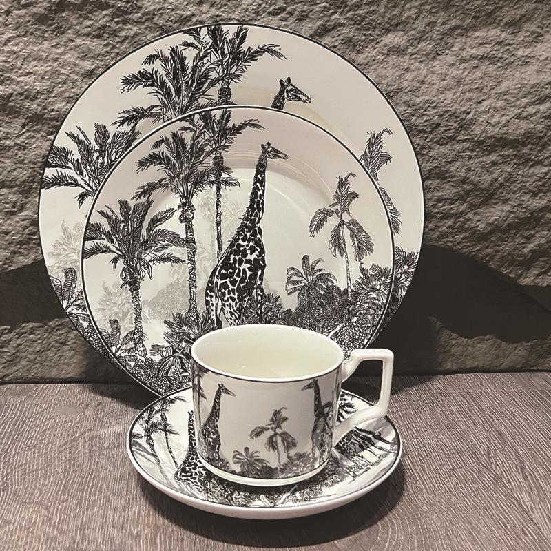 Ins Style French Giraffe Coffee Cup and Saucer Set Retro Ceramic Cup Niche Afternoon Tea Coffee Cup Dishes Dinner Plates
