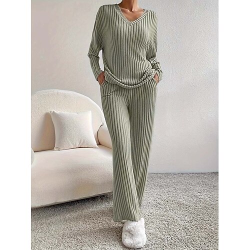 Per donna Elegante Caldo Vintage Set da due pezzi Manica Lunga Scollo a V Tinta unica All'aperto Casuale Quotidiano Nero Verde chiaro Marrone chiaro Primavera Vestibilità comoda