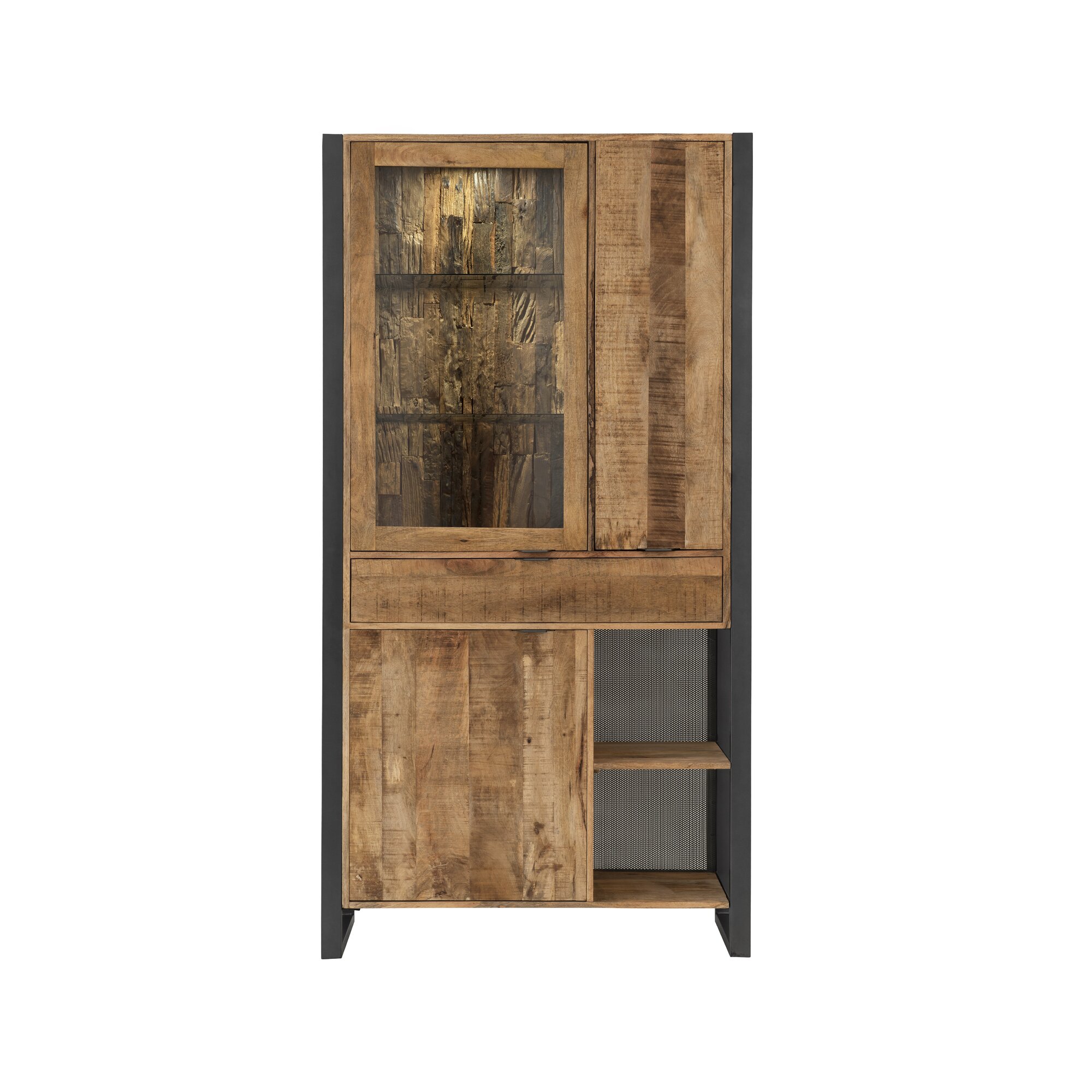 Vitrine HOME AFFAIRE "Elda", mango, schwarz, B:106cm H:195cm T:45cm, Glas, Holzwerkstoff, MDF, Metall, Schränke, Vitrine, Vitrine mit 3 Türen & 1 Vollauszug Schublade - (B/T/H) 106/45/195 cm