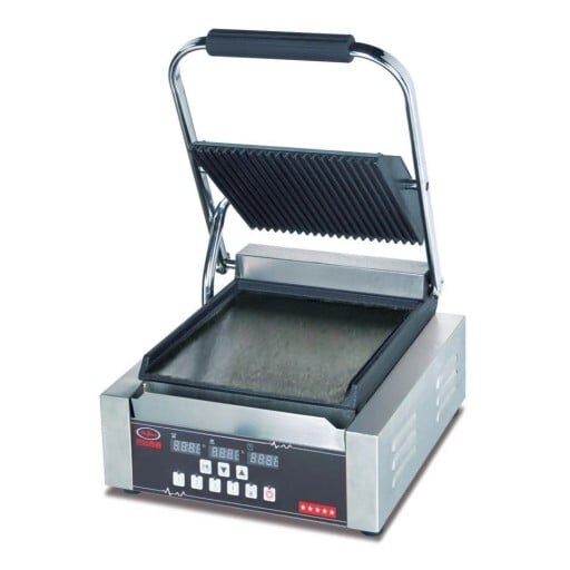 Ristoattrezzature Einzelner professioneller digitaler elektrischer Sandwichmaker, gerippt/glatt, 41 x 37 x 21 cm