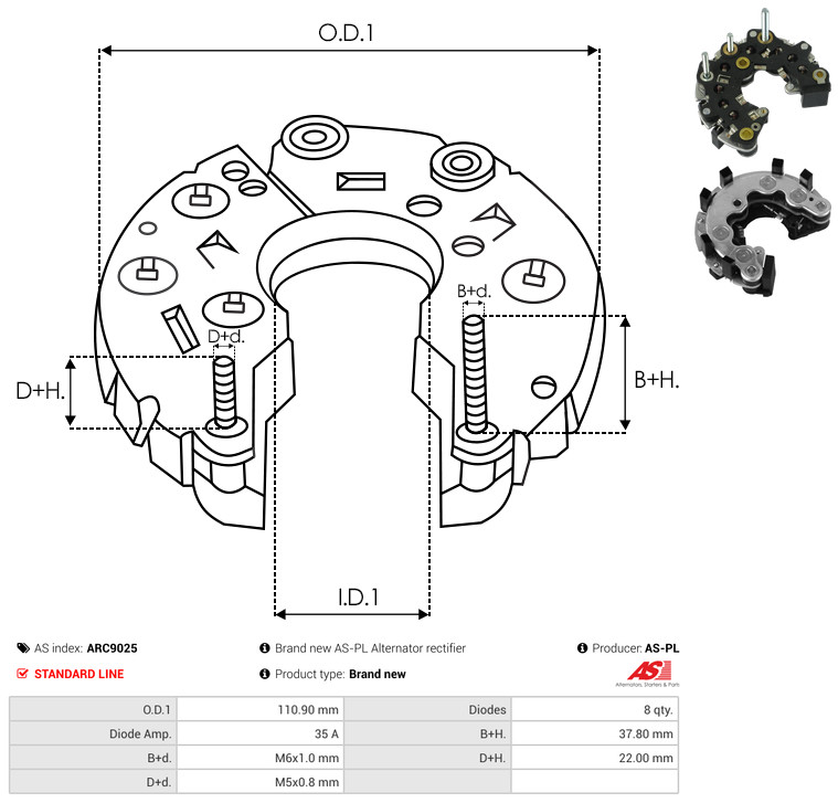 AS-PL Gleichrichter, Generator ARC9025 Universal 110,90mm