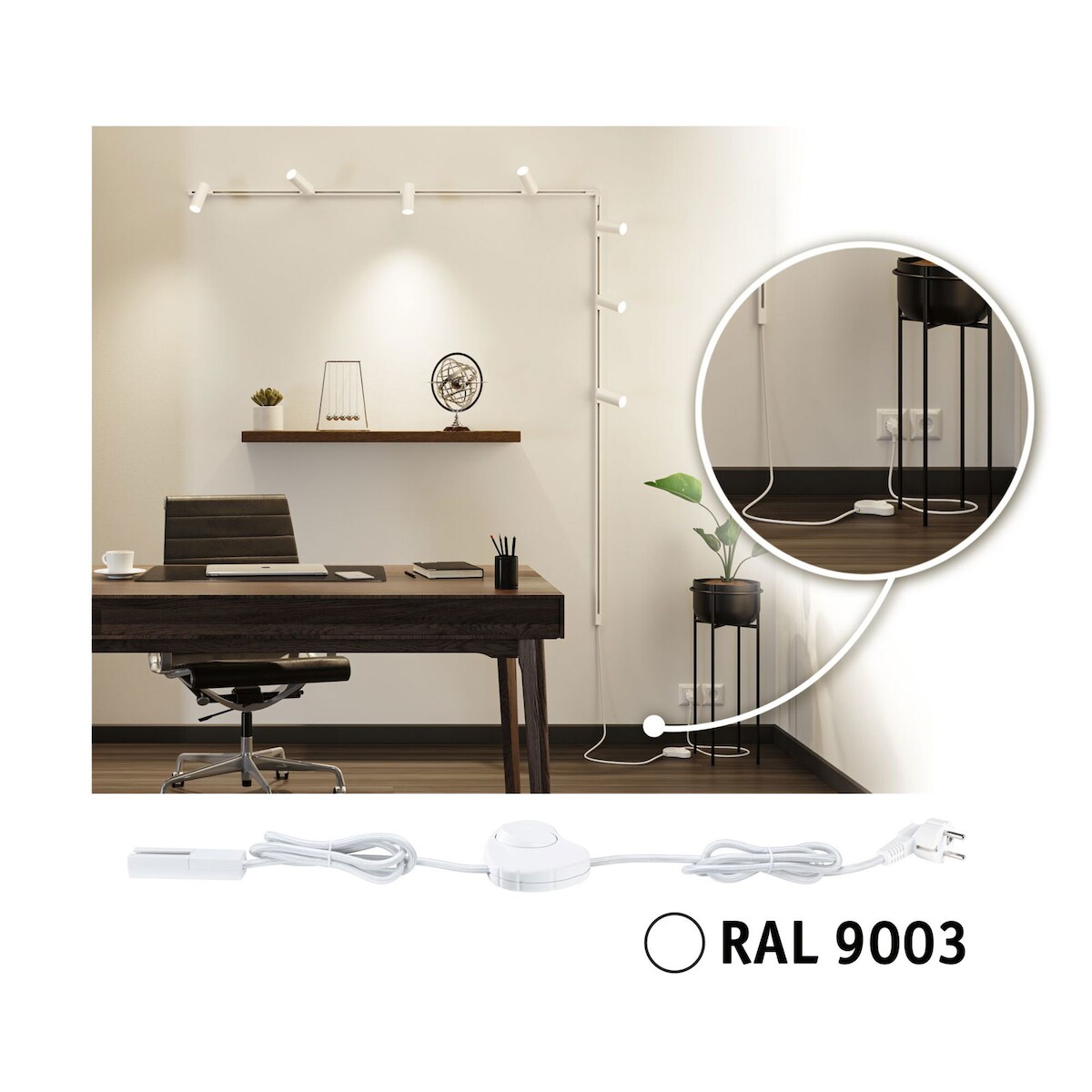 Paulmann URail Einspeisung Kabel mit Schalter 2m max. 1000W Signalweiß 95659