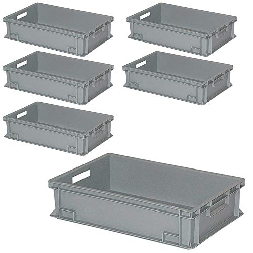 BRB 6er Set Eurobehälter mit 2 Durchfassgriffen 600x400x150 mm, 27 Liter, grau