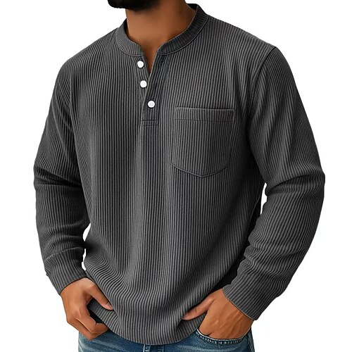 Per uomo Camicia di Velluto a Coste Maglia Henley Maglietta Manica Lunga Tinta unica Semplice Testurizzato Moda Designer Casual Tasca Bottoni Caldo Henley Casuale Quotidiano All'aperto Estate Autunno