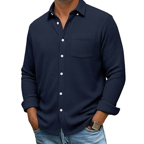 Per uomo Camicia Camicia a nido d'ape Camicia casual Camicia con colletto alla coreana Camicia con Bottoni Blu Rosa Vino Blu marino Verde Manica Lunga Semplice Testurizzato Collo alla coreana Casuale