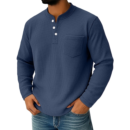Per uomo Maglietta Waffle Maglietta Maglia Henley a nido d'ape Manica Lunga Henley Autunno Tutte le stagioni Tinta unica Testurizzato Casual Tasche Casuale Casa All'aperto Blu Rosso Blu marino